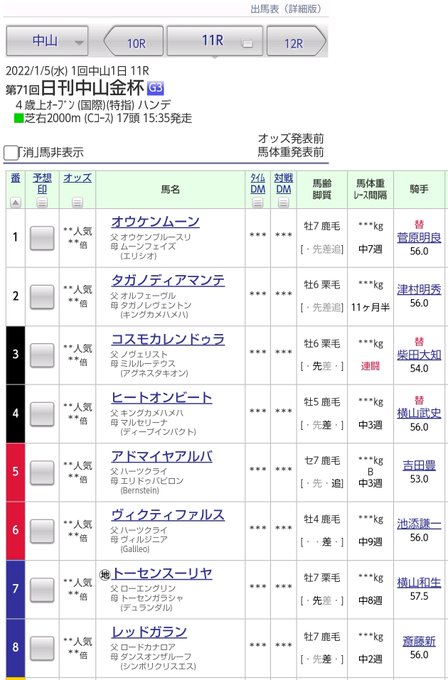 #中山金杯 #京都金杯 pic.twitter.com/McWeKgXBKR