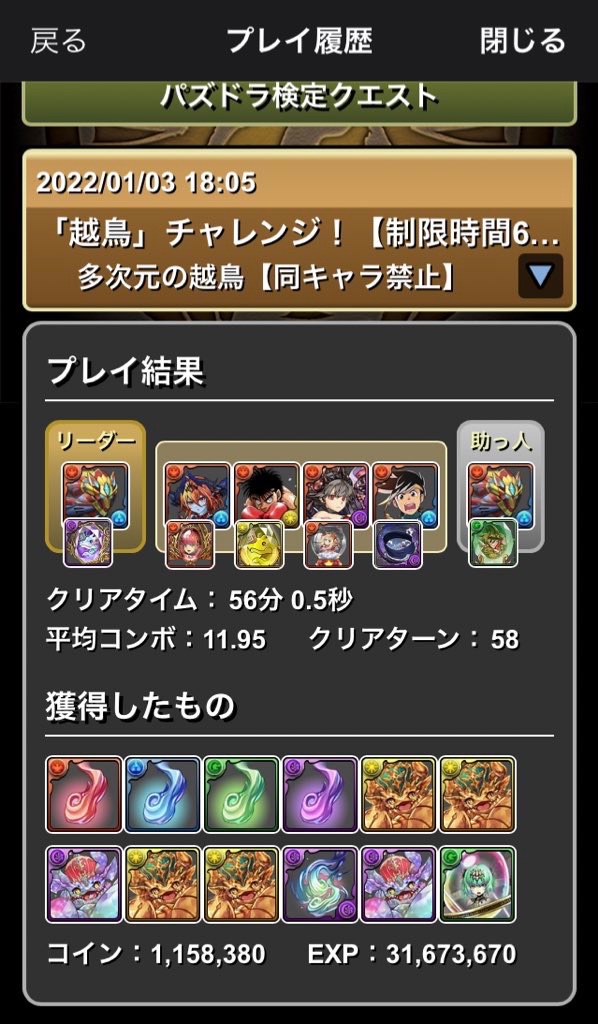 この間越鳥チャレンジクリアしました