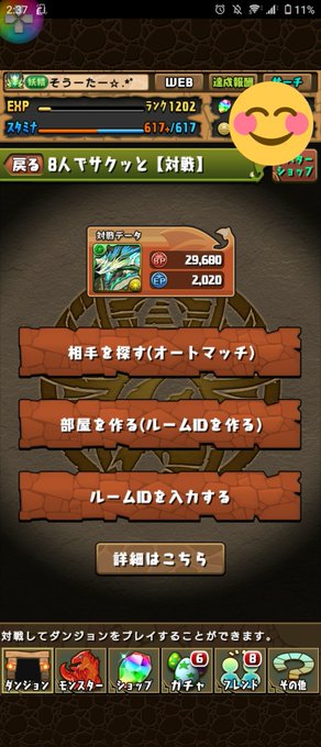 ランク1500目指してのんびりパズドラやってるので良かったら仲良くしてください(''∇^d) ナイス☆!!