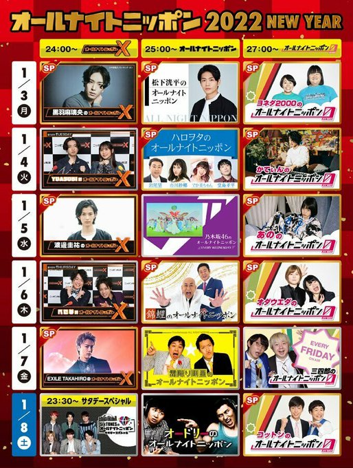 今夜のオールナイトニッポンは