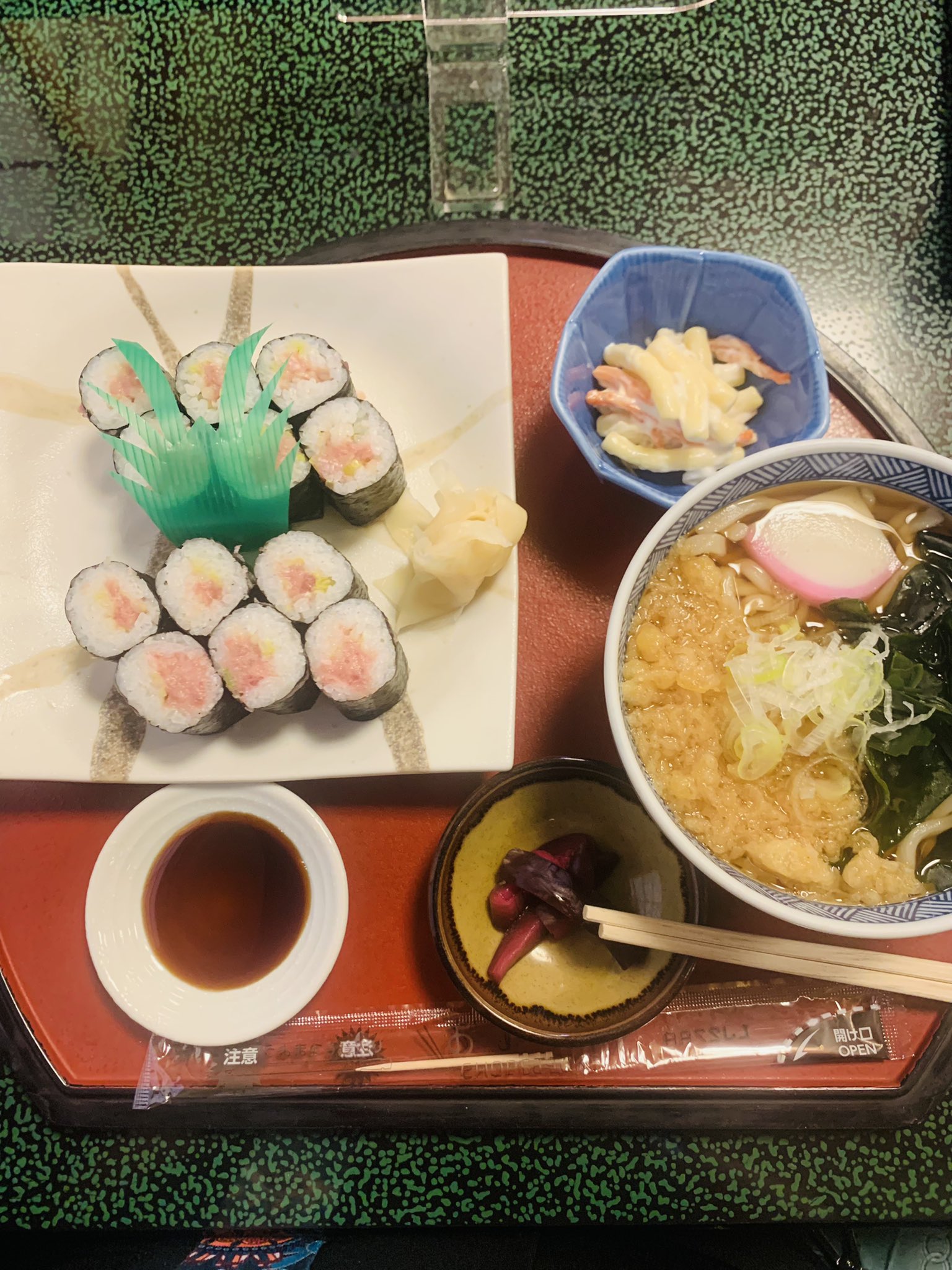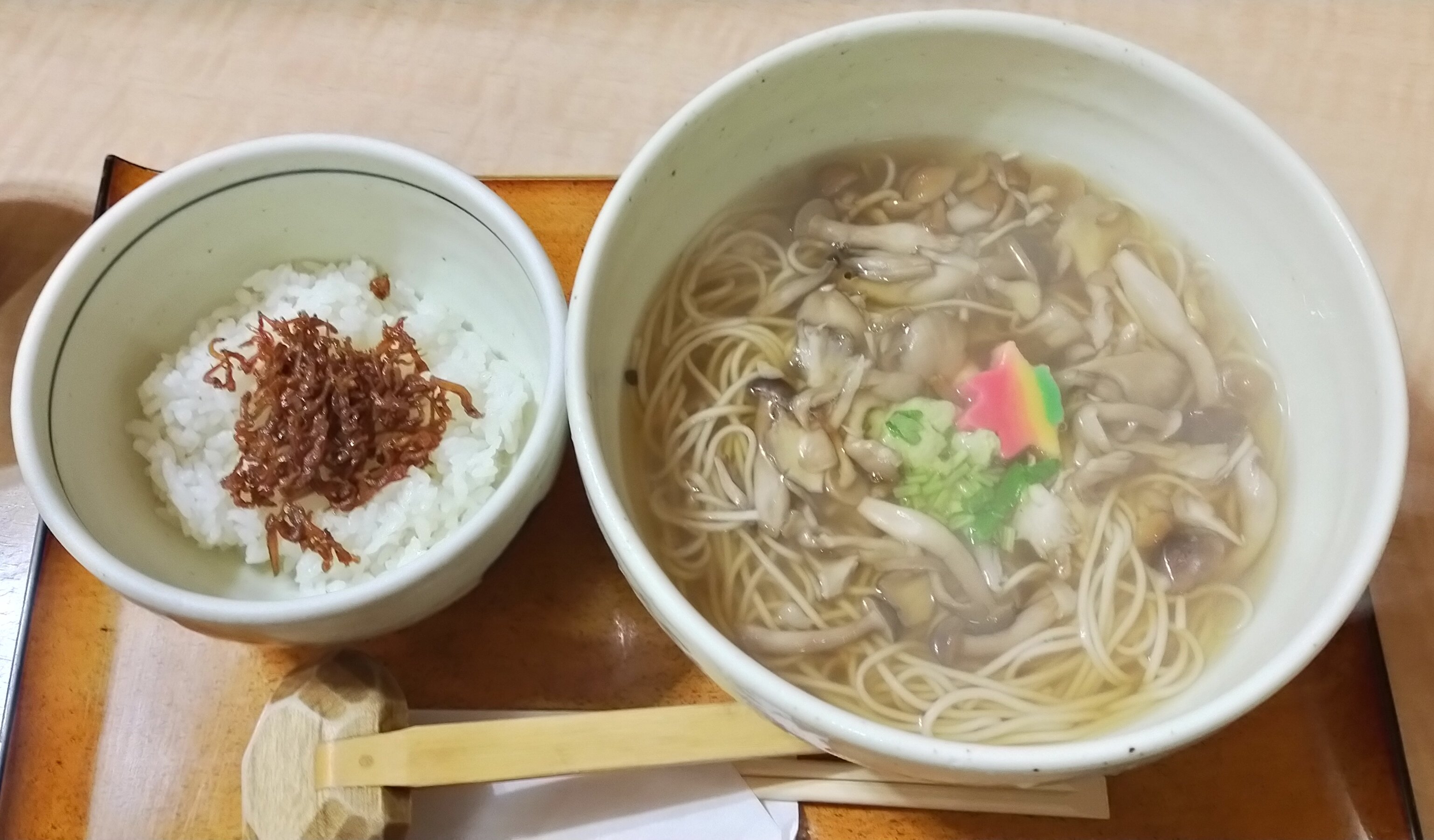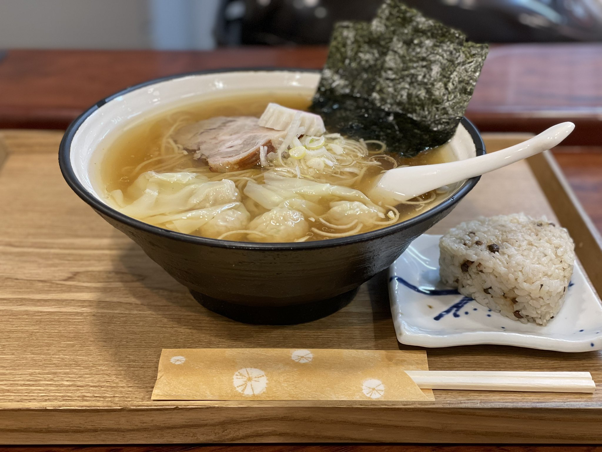 お昼は和歌山ラーメンの「せんよし」で特中華そばと巻き寿司を食べたよ🐸🍜🍣
