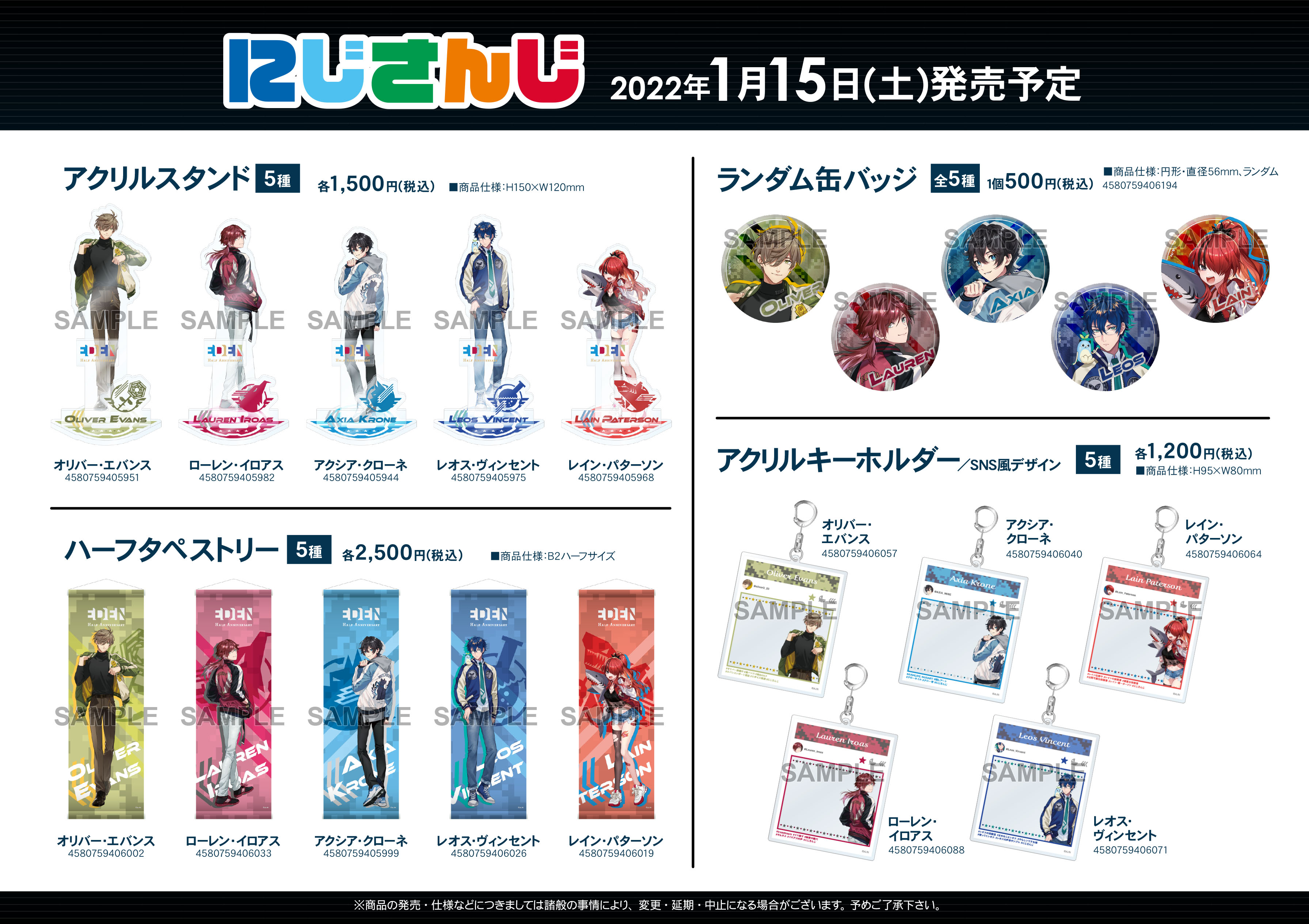 『にじさんじ:エデン組ハーフアニバーサリーグッズ』本日より販売開始ポロよー💖
