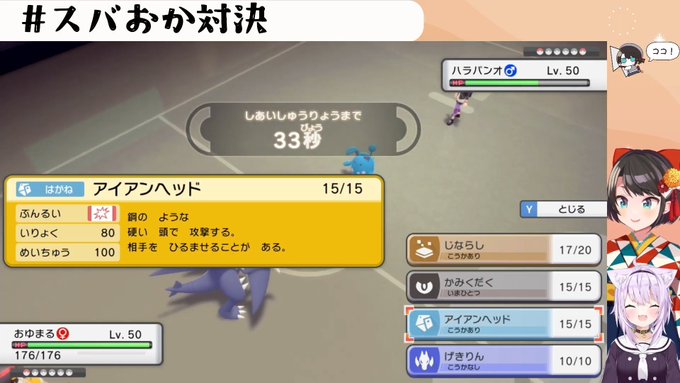 正直、おかゆさんの圧勝かもと思うところがありましたけど、初手ワンパンでしたし、スバルさんが技構成とか色々考えてて熱い勝負に持ち込んでたの良かったですね。