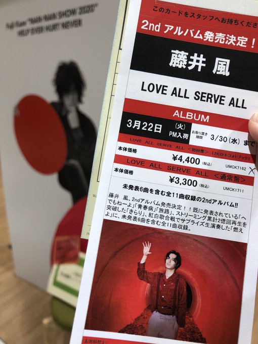 きました!風さんの2ndアルバム『LOVE ALL SERVE ALL』3月23日発売決定🙌🍃🍃