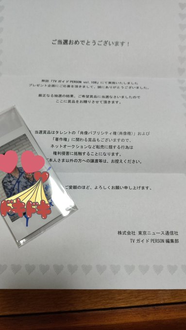 あたっ……あたっっっっ……当たった!!!!ぎゃーーーーー!!!!!!!なになになになに!!! #TVガイドPERSON 様からポラロイド届いた!!!!