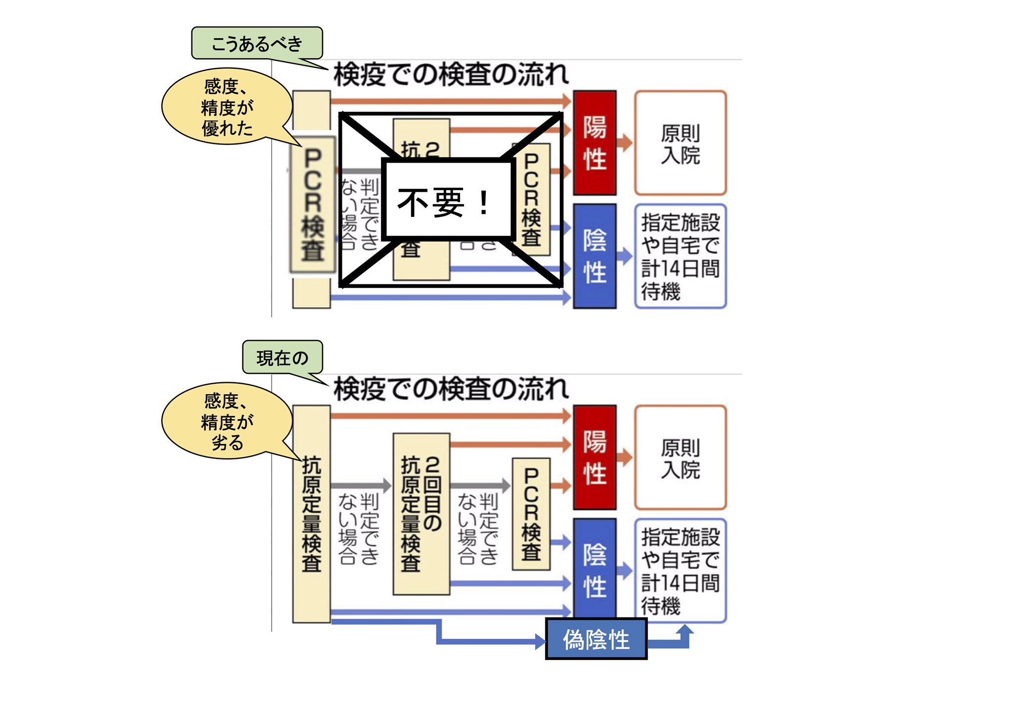 ・感度の劣る抗原定量検査を廃し代わりに感度の良いPCR検査に!