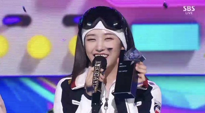 ユジンは「人気歌謡でトリプルクラウンできるように助けてくれたDIVEの皆さんありがとう」と所感を伝えた後、メンバーたちの名前を呼んだ