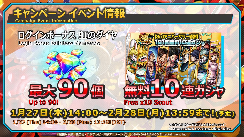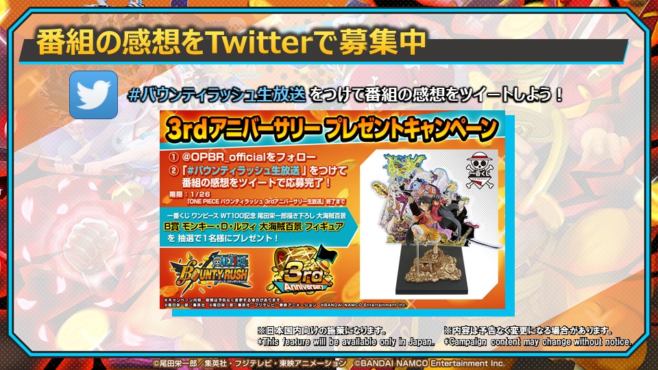 ※応募規約→opbr.bn-ent.net/3rdanniversary…