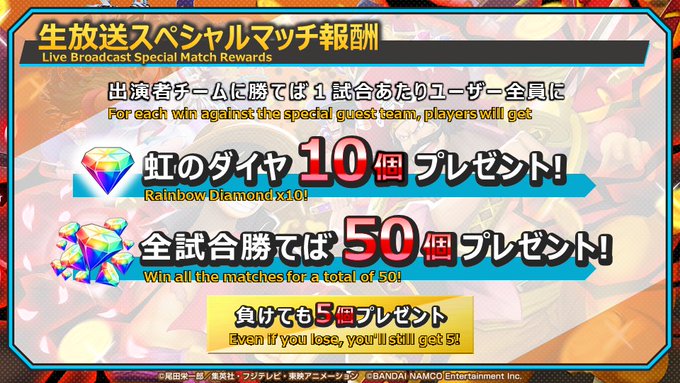 視聴者様チームが勝つと「虹のダイヤ」10個プレゼント!