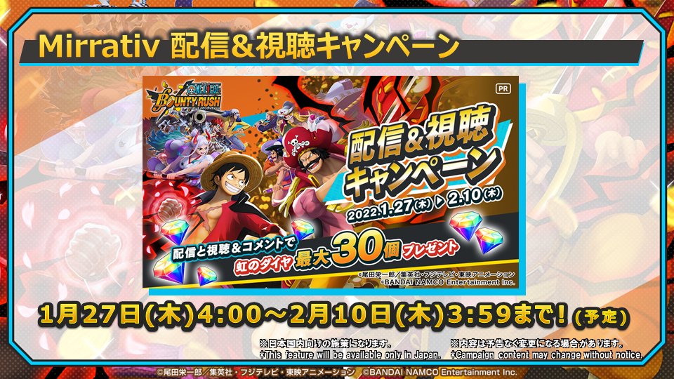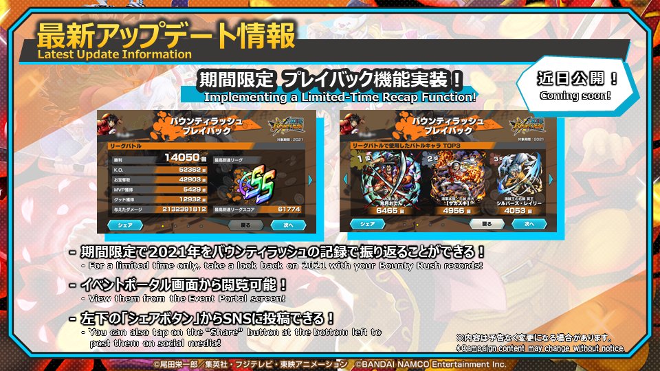 引き続き、「ONE PIECE バウンティラッシュ」をどうぞよろしくお願いいたします!