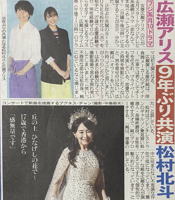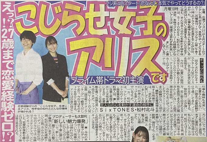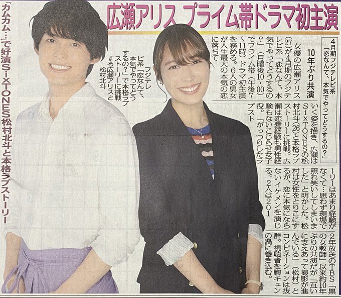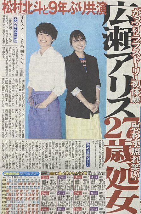 #広瀬アリス #松村北斗 #恋なんて、本気でやってどうするの? #SixTONES nikkansports.com/entertainment/…