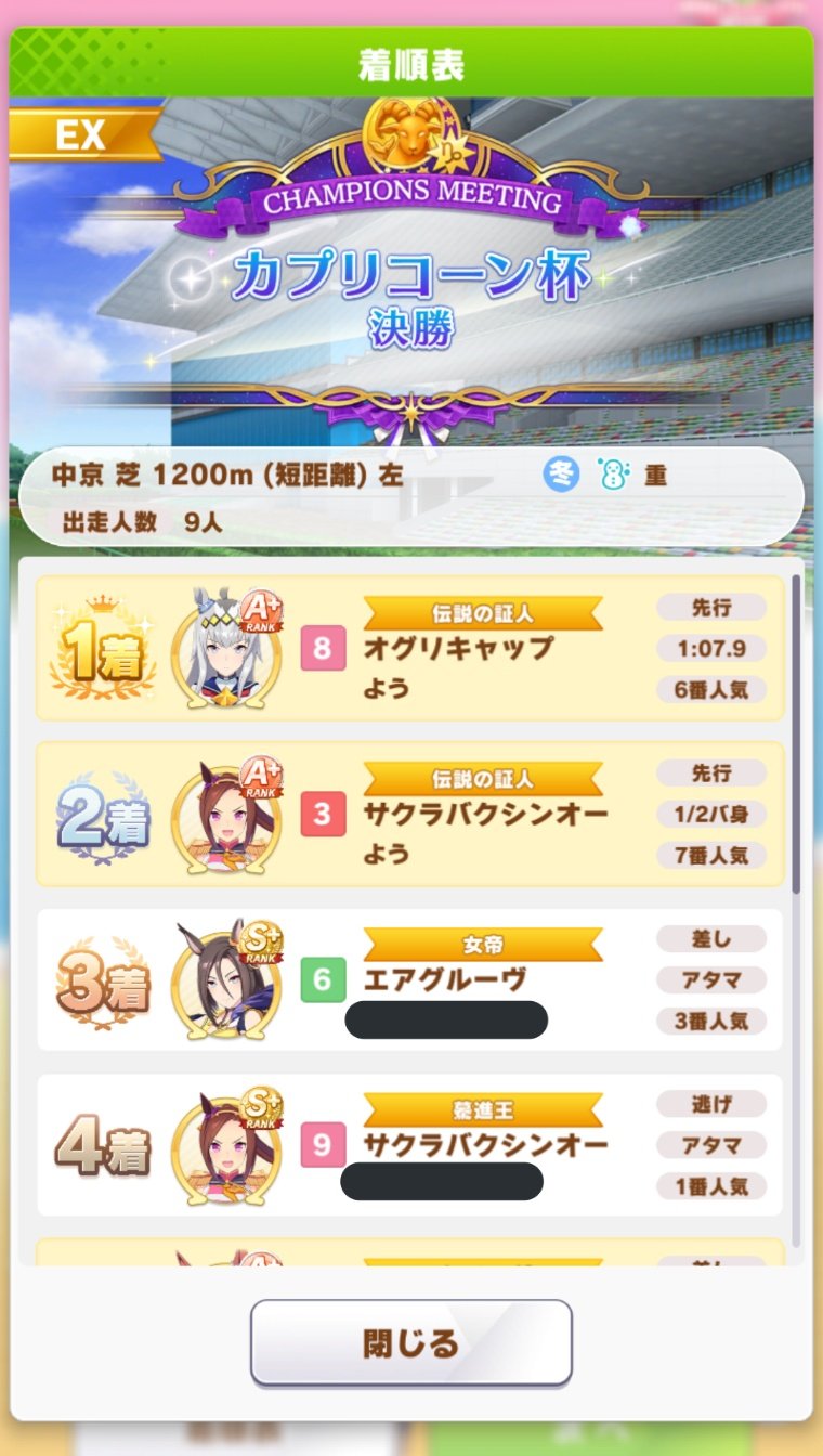 #ウマ娘 #ゲームウマ娘 #ウマ娘プリティダービー #カプリコーン杯 pic.twitter.com/zCmI5QlKLk