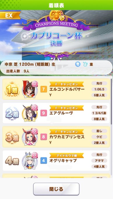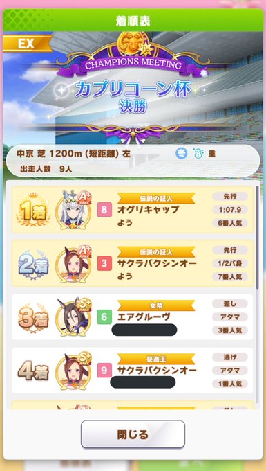#カプリコーン杯 #ウマ娘 #カプリコーン杯決勝 twitter.com/techinguri/sta… pic.twitter.com/kVzC3087aM