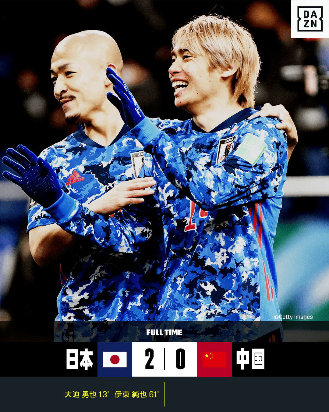 #大迫勇也 のPKで先制した日本。後半には #伊東純也 が3試合連続弾となる追加点を奪って中国に勝利!