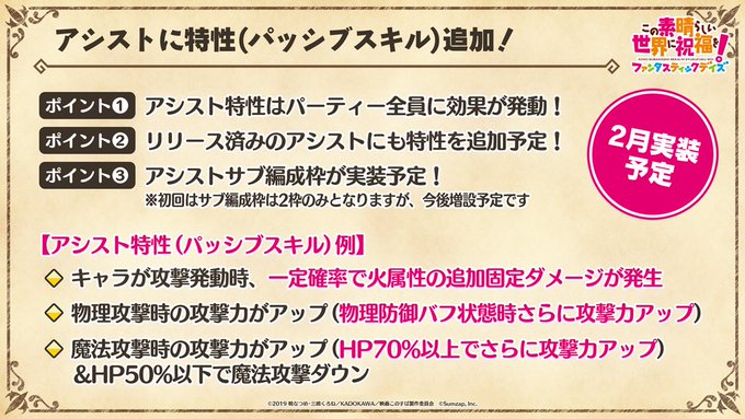アシストに特性(パッシブスキル)追加❗
