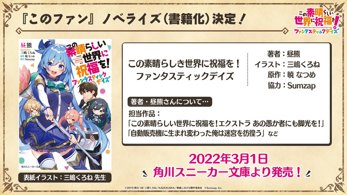 『#このすば』原作 #暁なつめ 先生