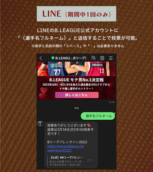 【#Bリーグバレンタイン 明日23:59まで投票できます】