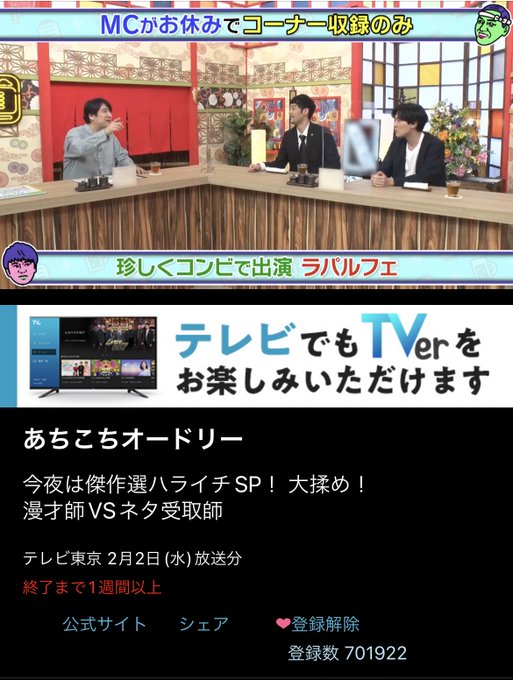 佐久間さんがラ•パルフェを #あちこちオードリー に呼んでくれました!むっちゃ楽しかったです!来週は尾身が口を開くはず。