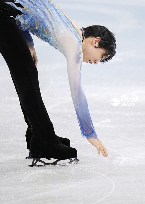 #フィギュアスケート #男子SP の演技後、ジャンプミスした地点の氷に触れる #羽生結弦 選手 (撮影・稲熊成之) #figureskate #YuzuruHanyu #北京五輪 #Beijing2022 nordot.app/86364465909560… pic.twitter.com/Na8XouTTeZ