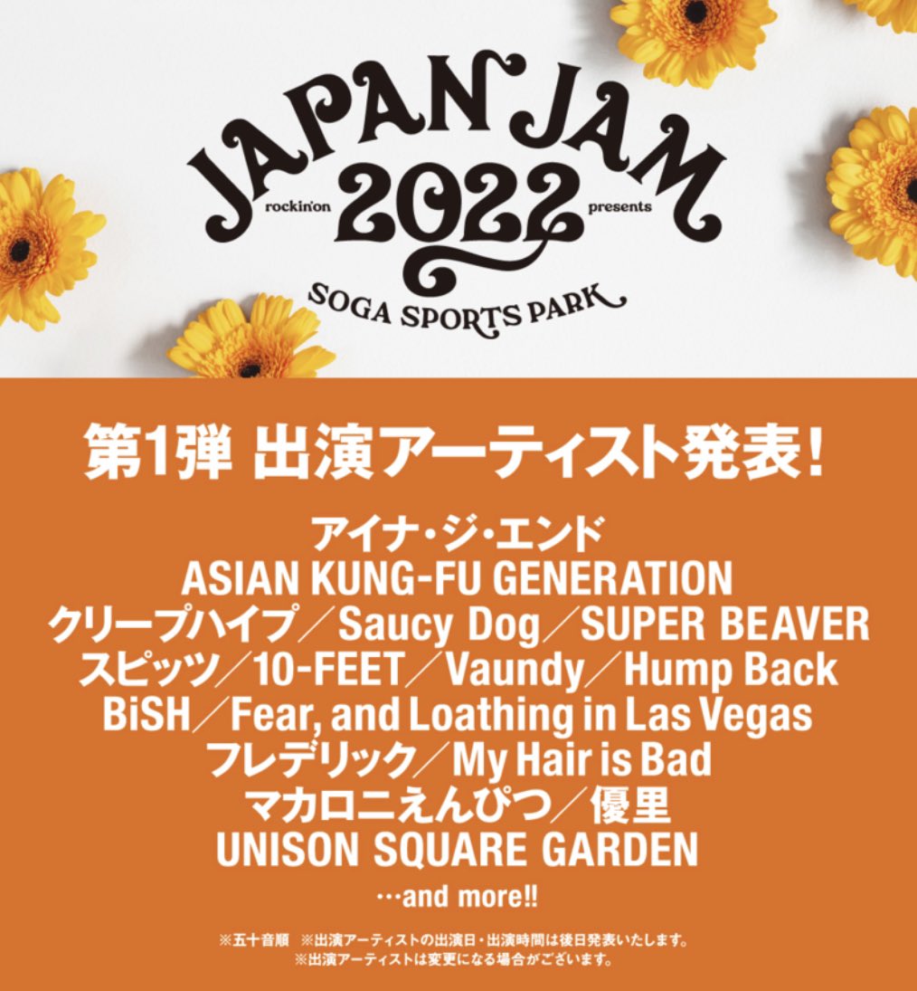 ✔️「JAPAN JAM 2022(@rockinon_fes)」出演決定🎊