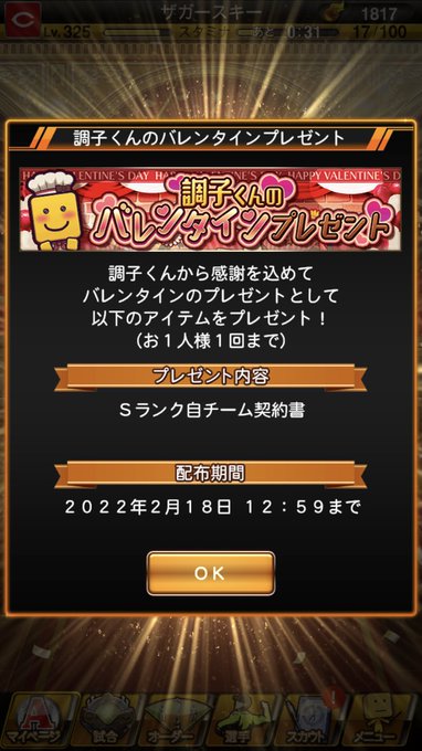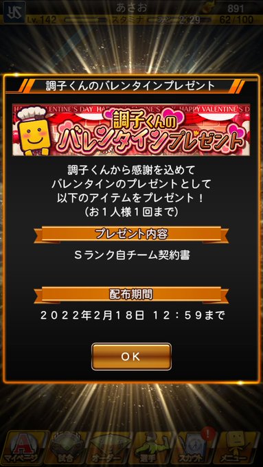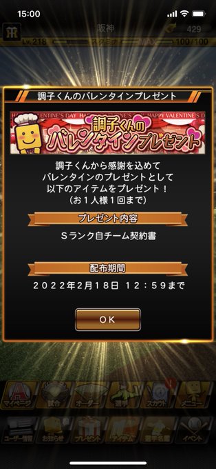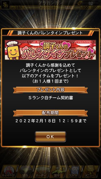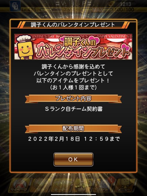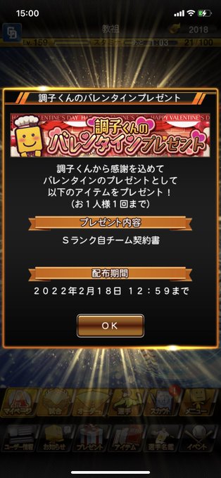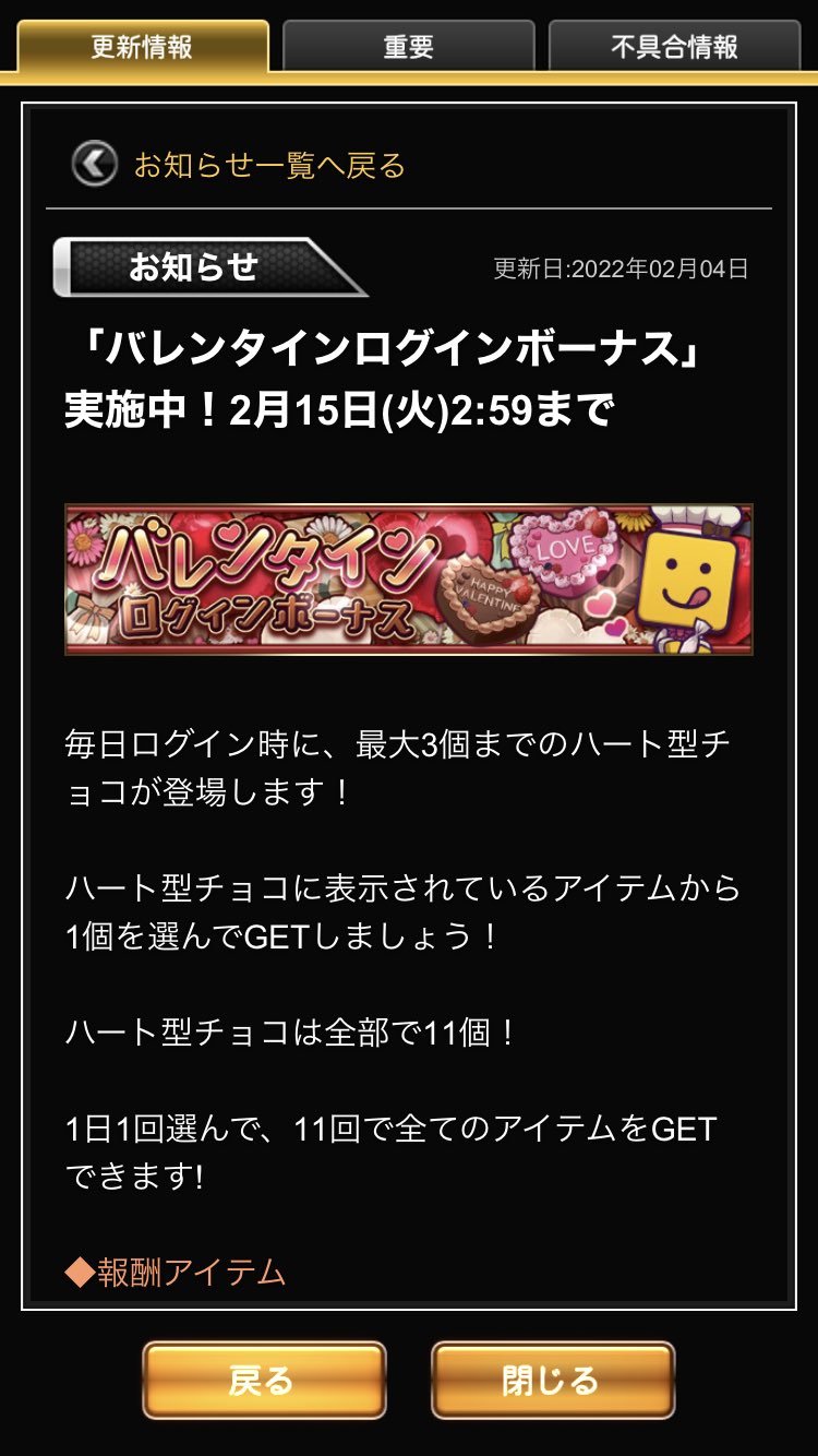 期間は今から2/18(金)12:59までになっているから毎日のバレンタインログインボーナスと一緒に忘れず受け取ってね!