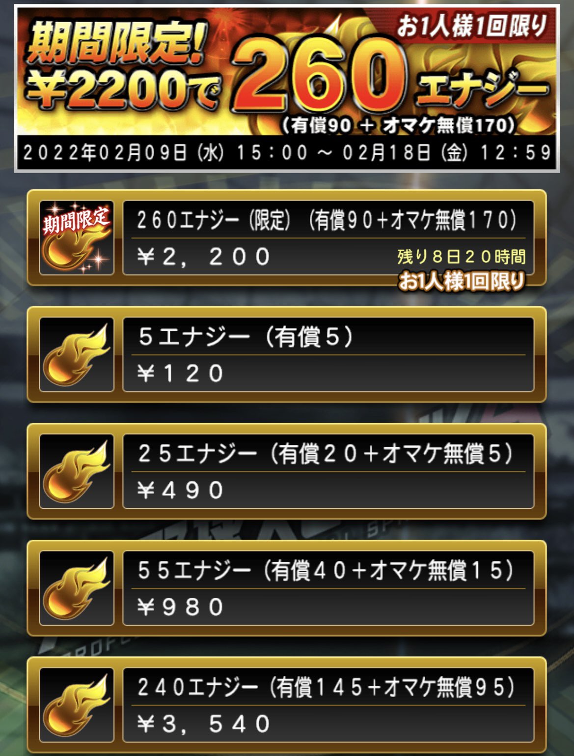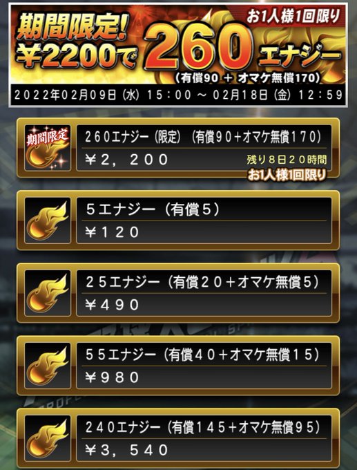 260エナジー(2,200円)を1名に❗️