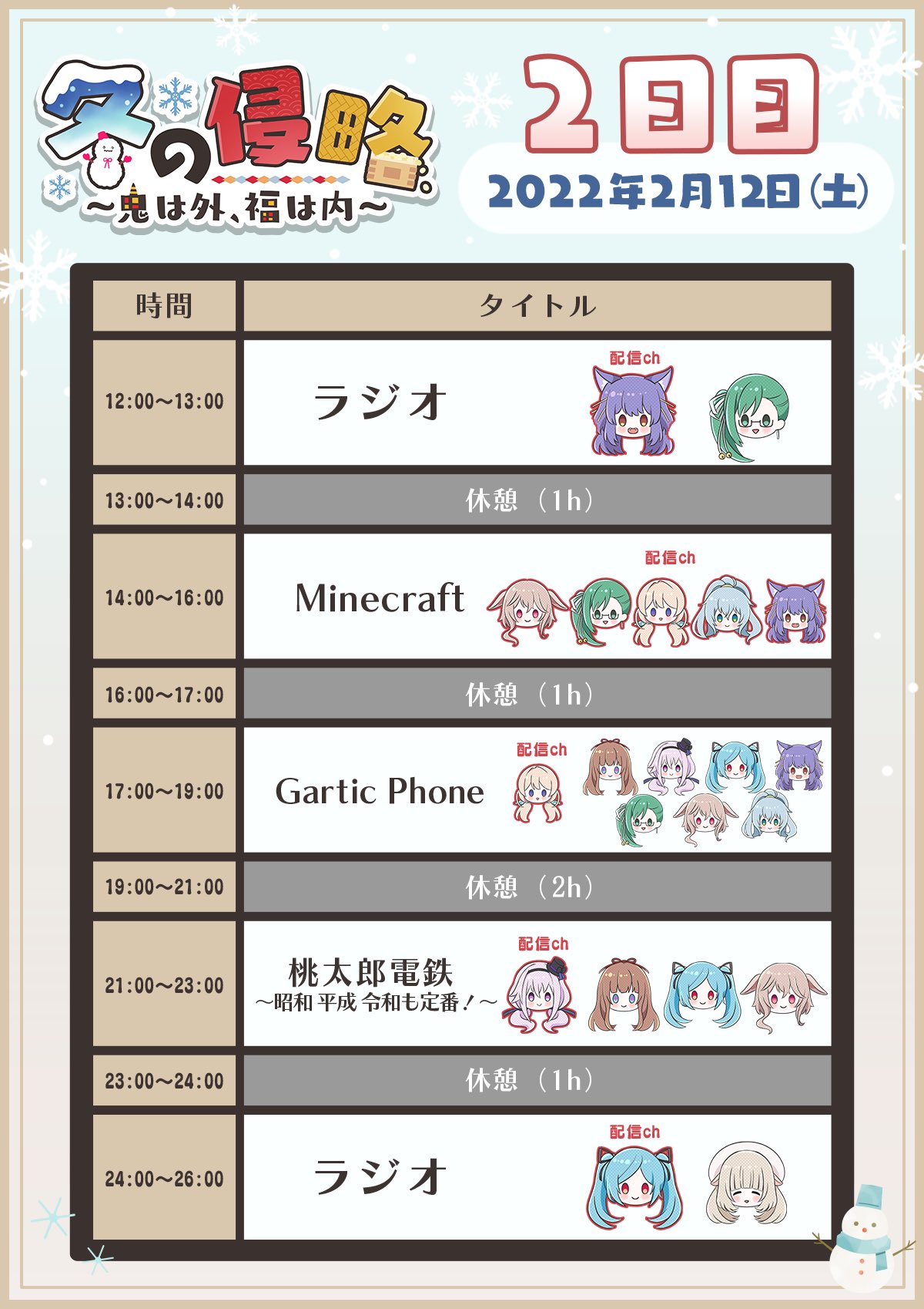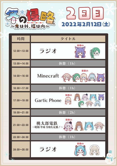 本日の #冬の侵略 の参加枠と配信枠だよ!!