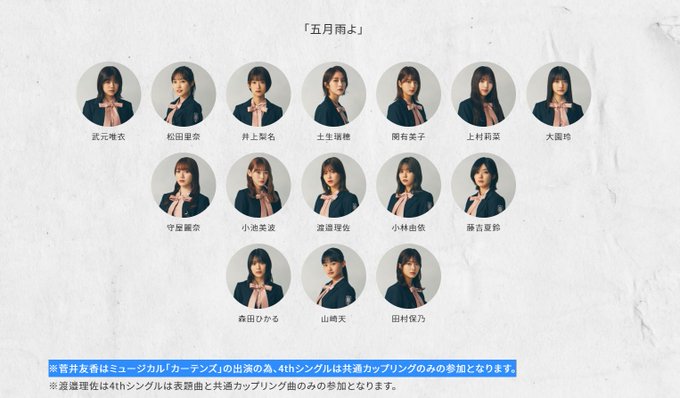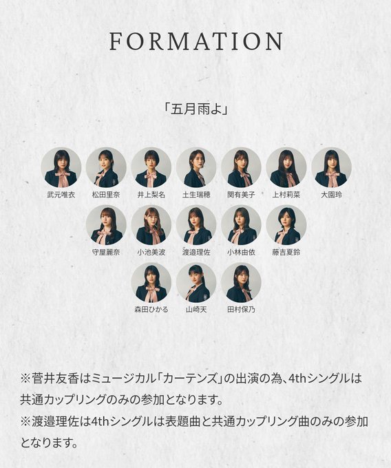 また、4thシングル「#五月雨よ」のフォーメーションも番組にて発表致します🌂