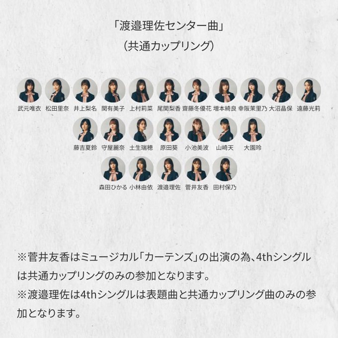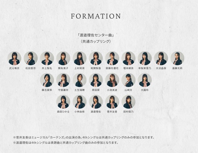 渡邉理佐センター、小林由依と菅井友香が挟むフロントシンメ。。。。