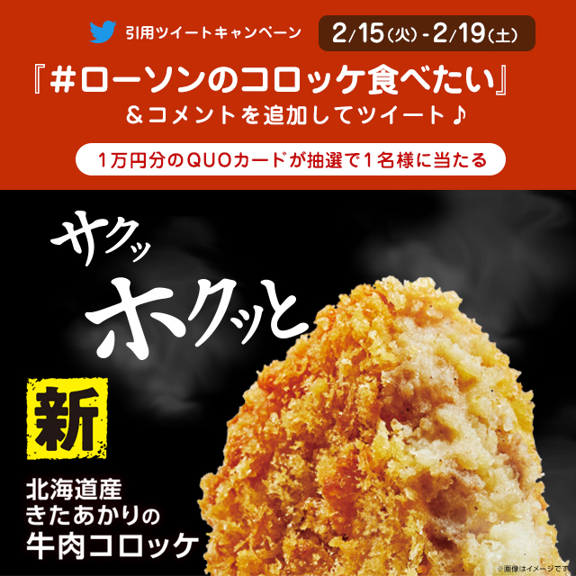 食べたくなったら @akiko_lawson をフォローし「 #ローソンのコロッケ食べたい 」とコメントをつけて引用ツイート♪抽選で1名様にオリジナルQUOカード1万円分が当たります(^^) #ローソン
