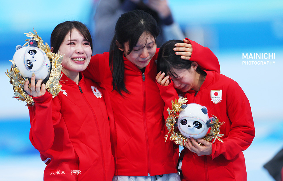 北京五輪#スピードスケート #女子団体追い抜き 決勝 惜しくも銀メダルの日本チーム。(15日、竹田津敦史、横山就平撮影)