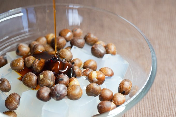 船橋屋では伊豆七島産を含む国産の天草をじっくりと煮固めております。優しい磯の香りの寒天に船橋屋秘伝の黒蜜をた〜っぷり絡めてお楽しみくださいませ✨ twitter.com/funabashiya_/s…