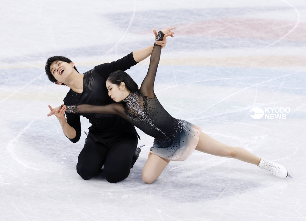 フィギュアスケートのペアで7位に入賞した三浦璃来、木原龍一組(19日、若杉和希撮影)