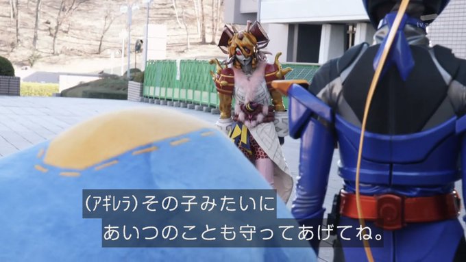 ウソみたいだろ?幹部3人でつよつよポーズキメてた右の紫の人とアギレラ様に振られて泣きまくってるオタクと同じ人なんだぜ? #仮面ライダーリバイス #nitiasa pic.twitter.com/KMc63YHXUn
