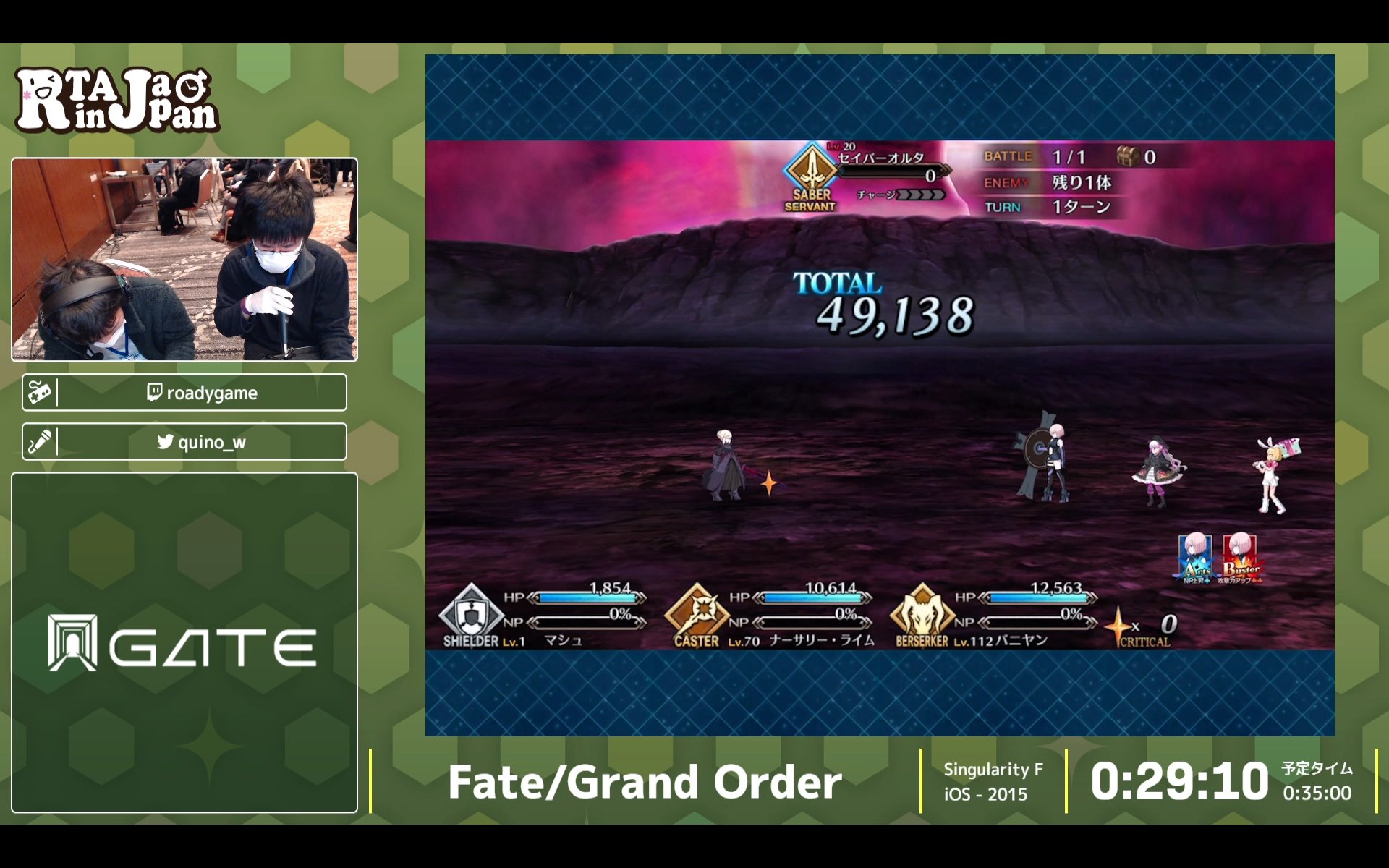 バーサーカー以外以外で30分切ったのは初めてだそうで。お疲れ様でした!早すぎてわけわかりませんでしたけどw #RTAinJapan #FGO