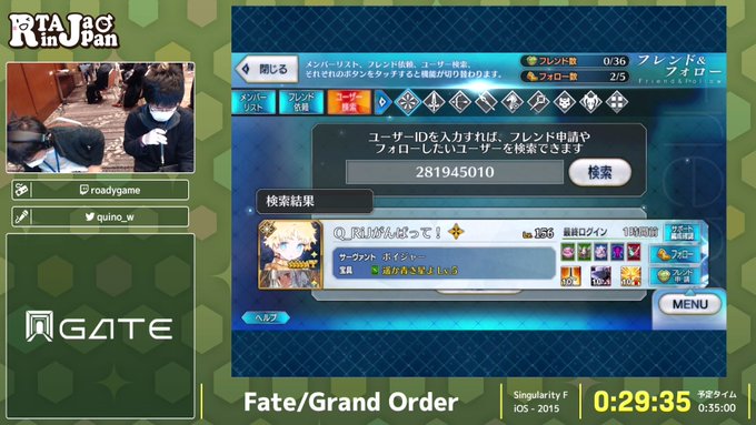次の『Fate/Grand Order』走者roadygameさんよりお知らせです。