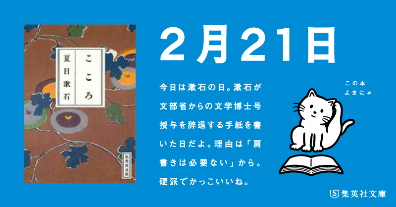そして、2月21日は? #漱石の日 🧔1911年(明治44年)の今日、当時の文部省から贈られた文学博士の称号を辞退した日。