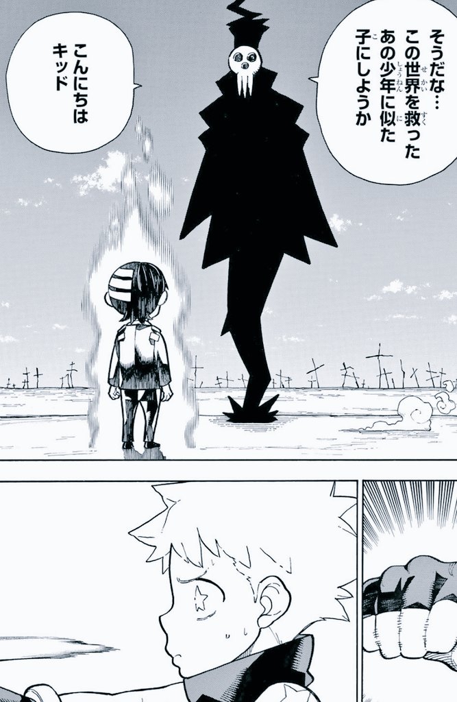 #炎炎ノ消防隊 ほんと好き、終盤に出てきた死神ってやっぱりソウルイーターの世界の死神だよね、太陽も月もソウルイーターの世界のとそっくりだし。繋がってて嬉しい。そして終わっちゃうの寂しい。 pic.twitter.com/grErBFrx0x