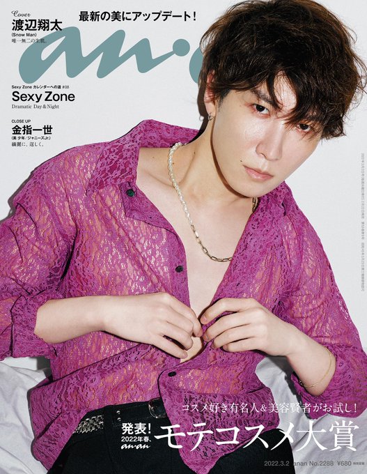 Snow Man渡辺翔太、"伝説"の表紙から1年半ぶり凱旋💕『#anan』モテコスメ大賞