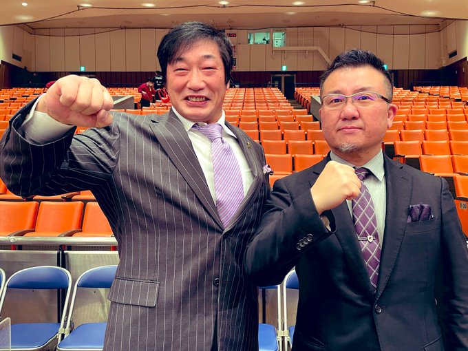 GLEAT後楽園ホール大会、小橋建太さんと佐久間一彦さんと一緒に放送席でGLEATしました。こうやって並ぶと小橋さんデカい!分厚い!!引退して9年も経ってる方とは思えない。 #GLEAT pic.twitter.com/bIMYiOXeHx