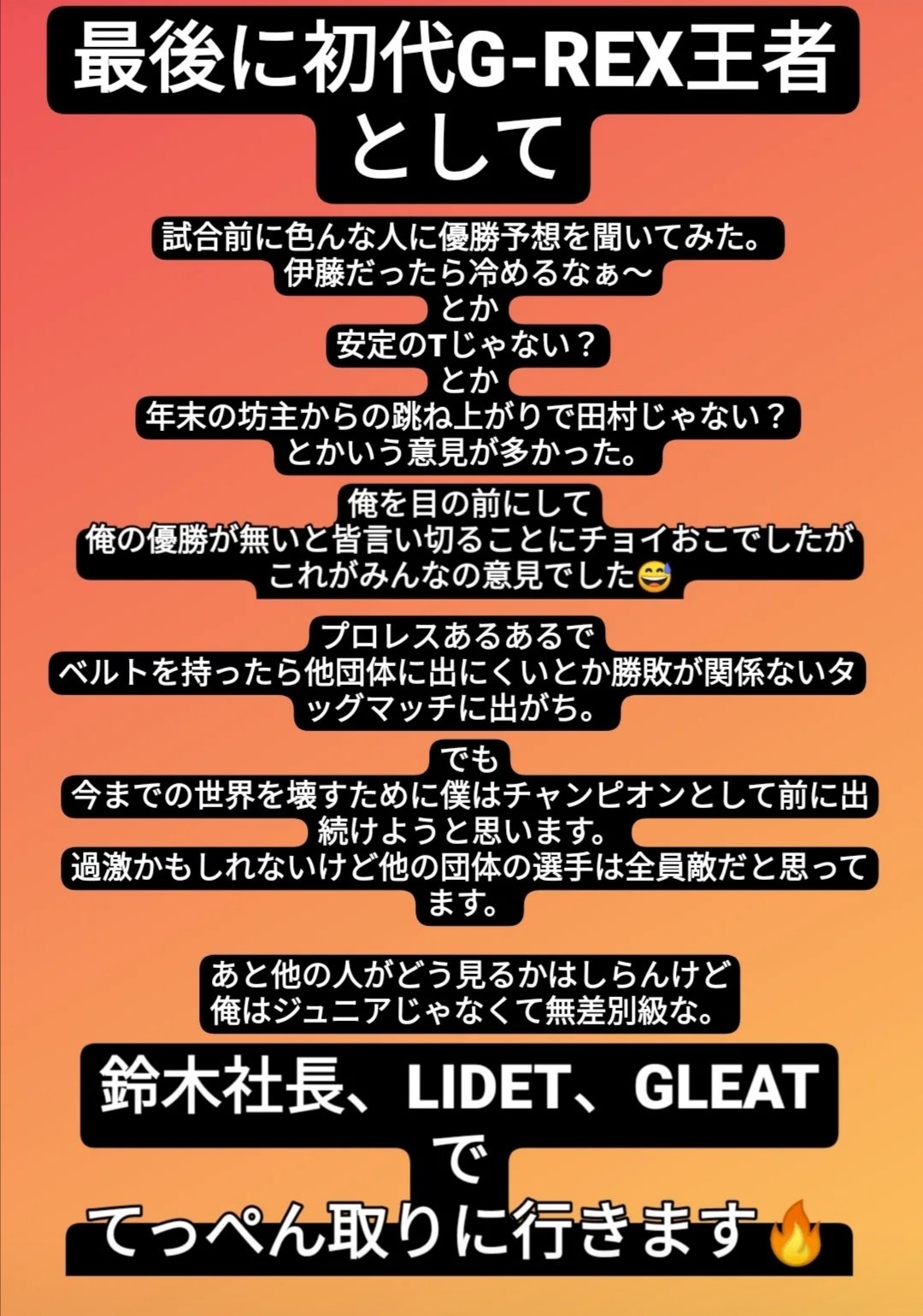 トーナメントの試合を見て感じることはあるが俺はGLEATでの野望を果たすために先ずはカズ・ハヤシをしっかり仕留めにいくぞ😏