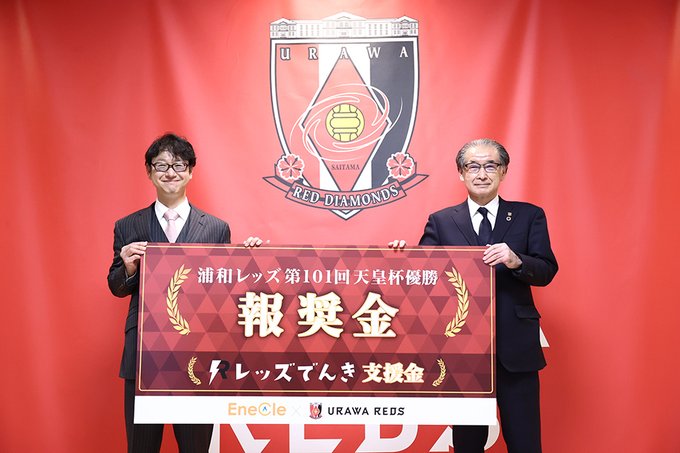 2/23、トップパートナーである堀川産業株式会社からレッズでんき支援金および『天皇杯 JFA 第101回全日本サッカー選手権大会』優勝の報奨金が贈呈されました。