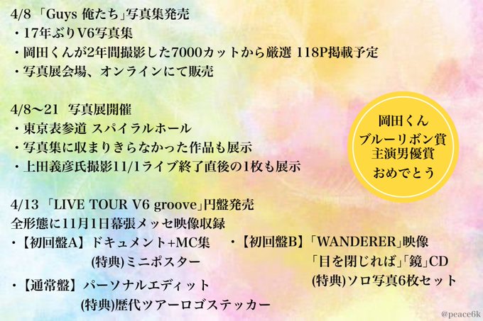 『LIVE TOUR V6 groove』4月13日発売🎉😭