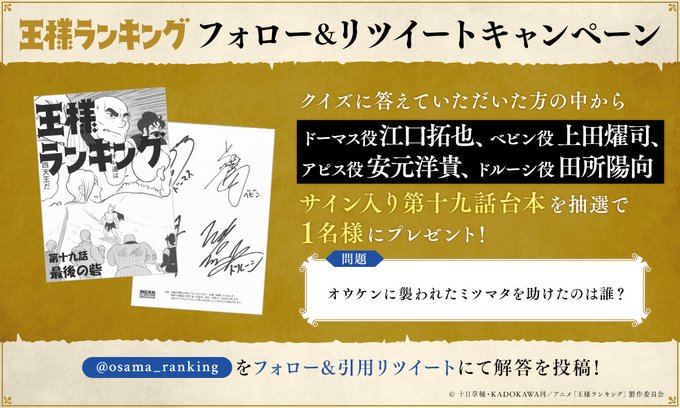 👑TVアニメ「#王様ランキング」第19話このあと放送!👑
