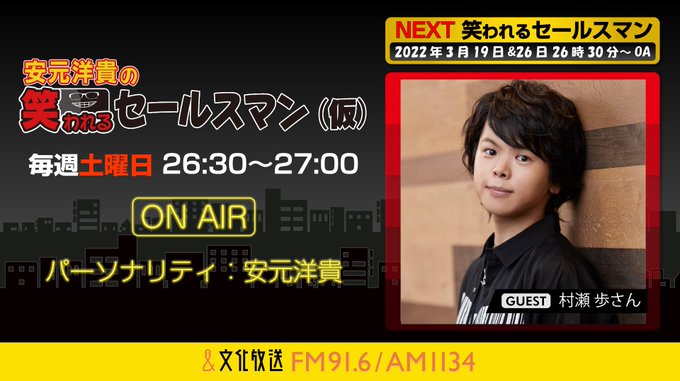3月19日・26日の放送はゲストに #村瀬歩(@murase_pipipi)さんをお迎えし、