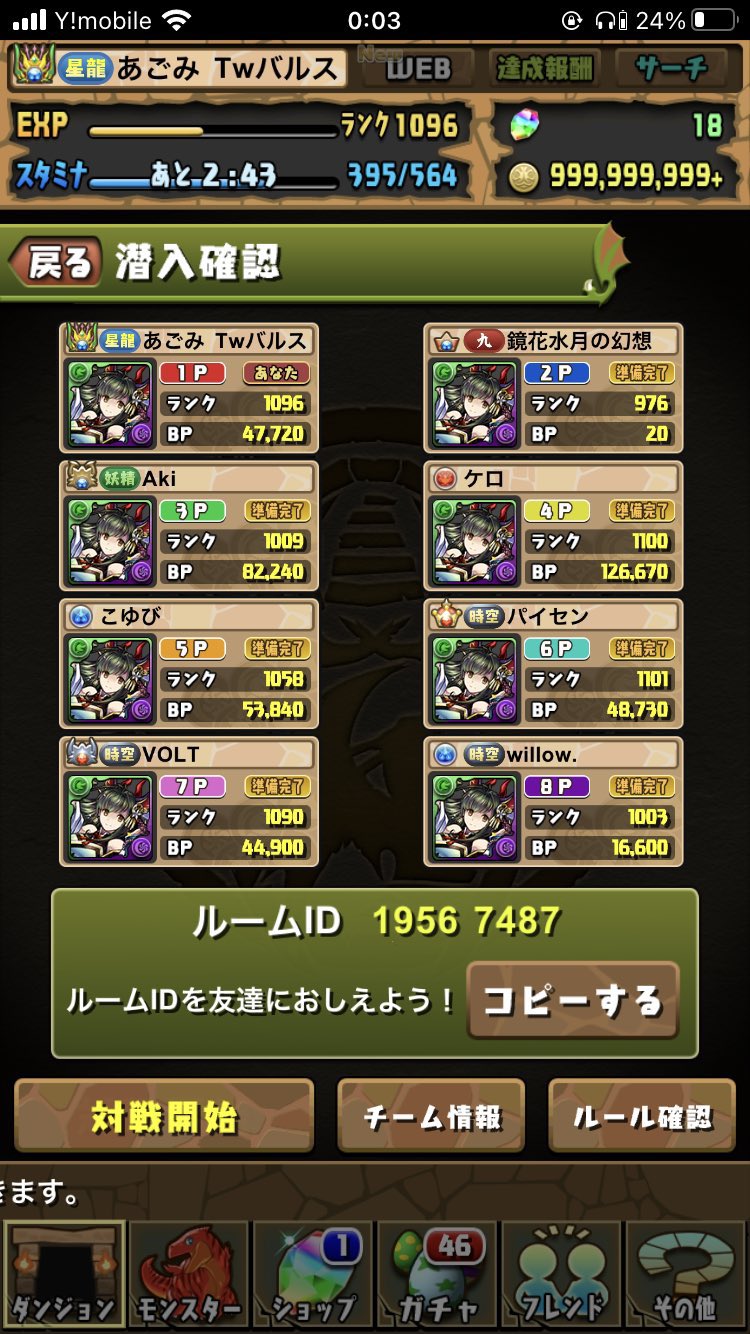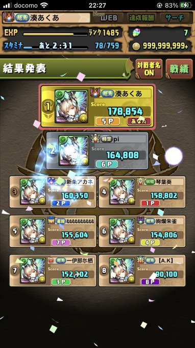 ランク1040パズドラーあかざです!