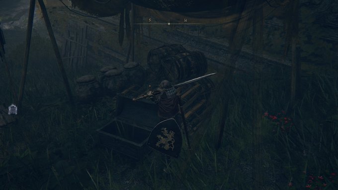 エルデンリング初心者やマルギット&ゴドリックに勝てなくて困っている人に教えたいのですが、ストームヴィル城東にある野営地から物理カット100%盾を宝箱から入手できます