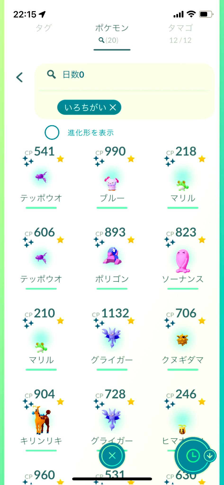 色違い25匹と💯4匹見つけれて