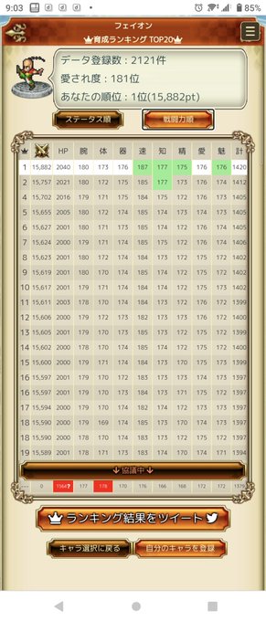 推しレベル、圧倒的にメサルティムだけ伸びているのに、上から2段目からは5000台に…。