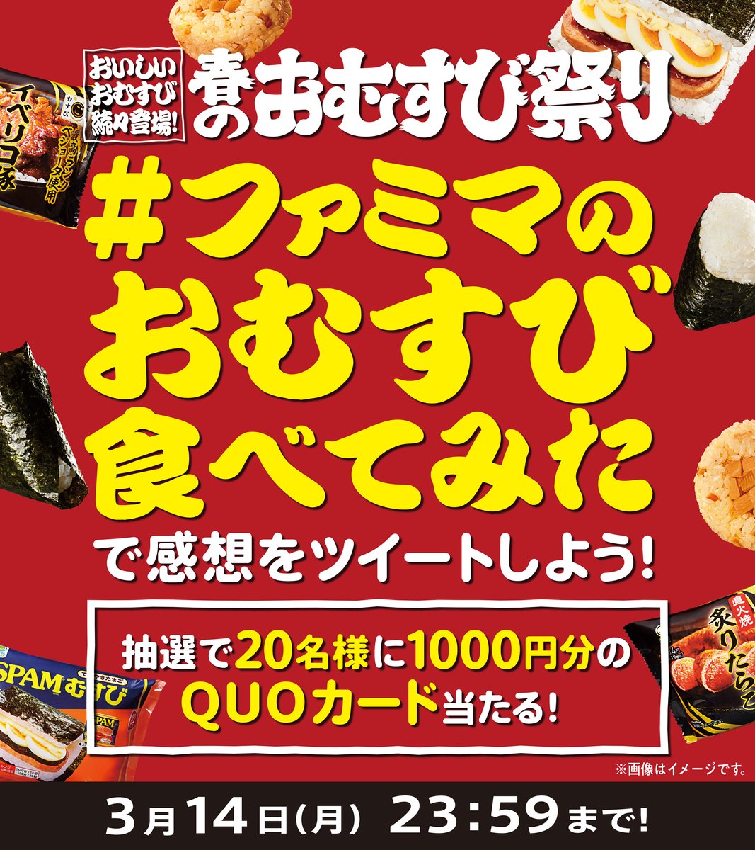 #ファミマ春のおむすび祭り 開催中🍙 #ファミマ @famima_now 👇のボタンからツイートで無料引換クーポンが抽選で合計5万人に当たる🎁 family.co.jp/campaign/spot/…